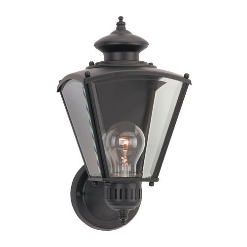 Outdoor Garden Lighting Sea Gull Lighting 8504-12 Single-Light New Castle Classic Outdoor Wall Lantern with Clear Beveled Glass, Black