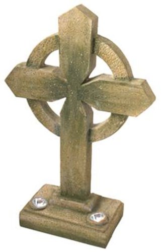 POLYRESIN STONE CROSS - Durable polyresin stone cross ~ White LED uplights the stone cross at night ~ Rechargeable NiCd battery (included) ~ 18" tall