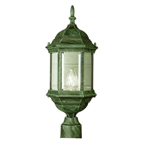 Upgrade your outdoor environment with this ultra-popular traditional style fixture. Beveled glass. Rust-proof cast aluminum construction. Finish color: Verde Green. Bulb wattage: 100