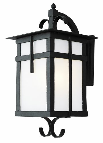 This unique outdoor fixture combines traditional Mission elements with contemporary lines. White glass. Rust-proof cast aluminum construction. Finish color: Black. Bulb wattage: 100
